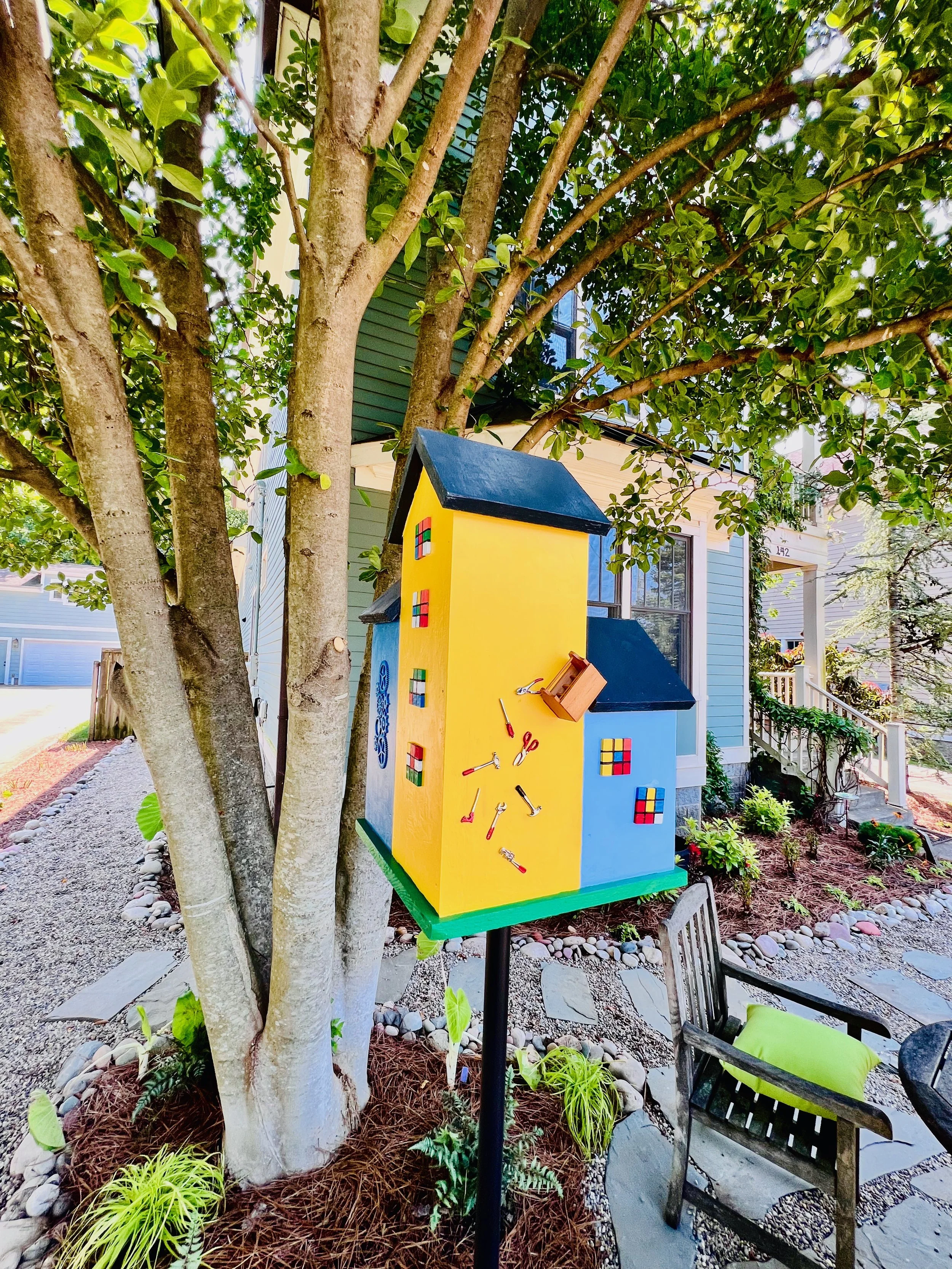 Water. It doesn't have to be a pond or a pool. A bubbling fountain or stone. A small pondless waterfall. A rain chain that the kids can watch during storms. Even a bird bath that they're responsible for filling. Water draws children the way it draws every living thing. And water in a garden is interactive — it reflects, it sounds, it attracts birds, it freezes in winter, it overflows after rain. It's never the same. A child's relationship with a water feature in the garden evolves as they grow — from splashing to watching to thinking.