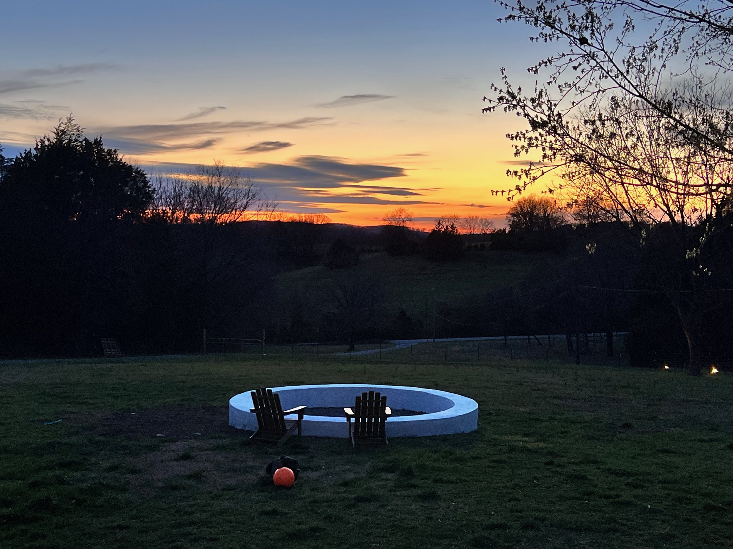 The same fire pit at dusk.